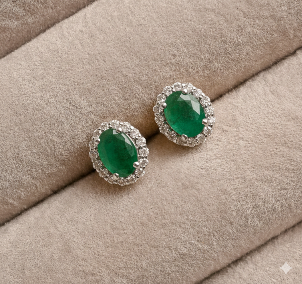 Emerald and Diamond Halo Studs