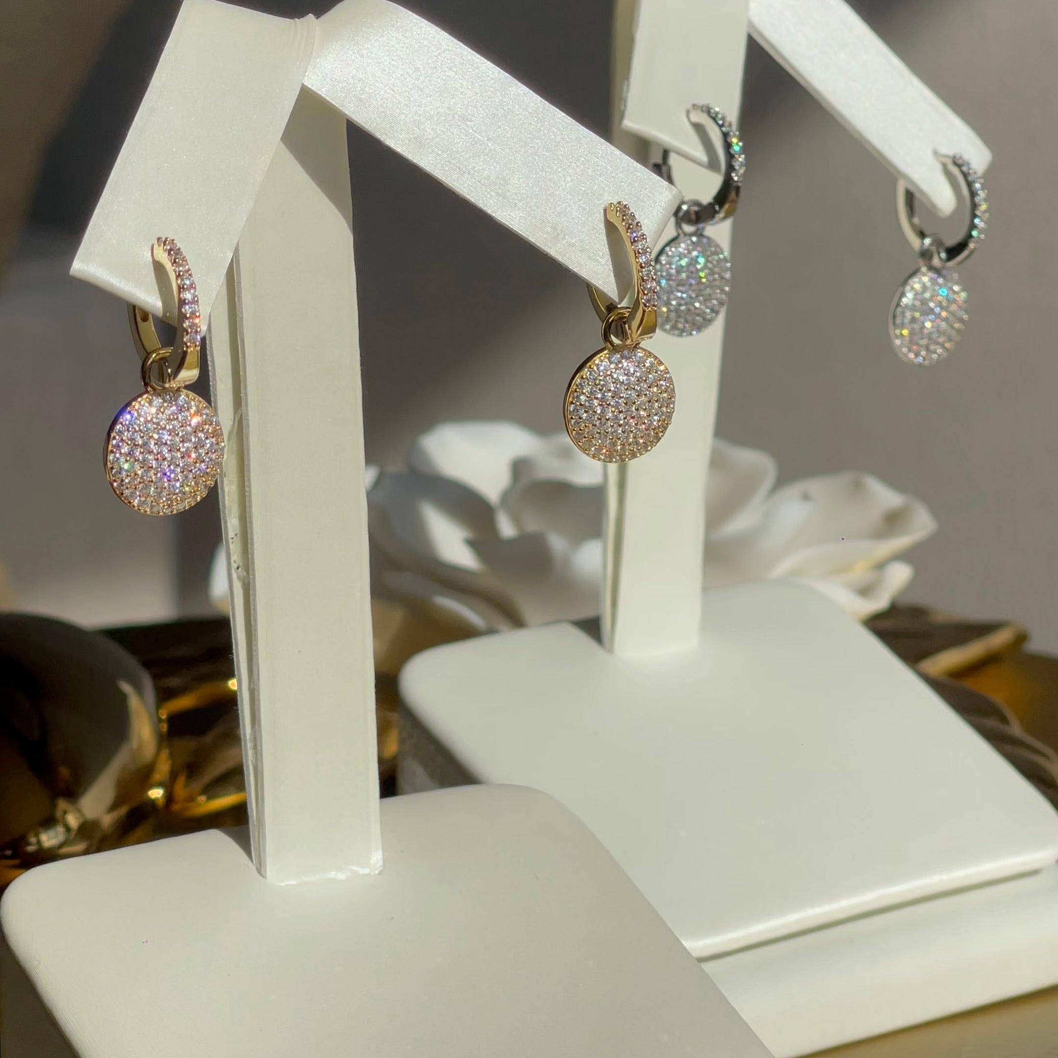 Huggie y círculo colgante pave