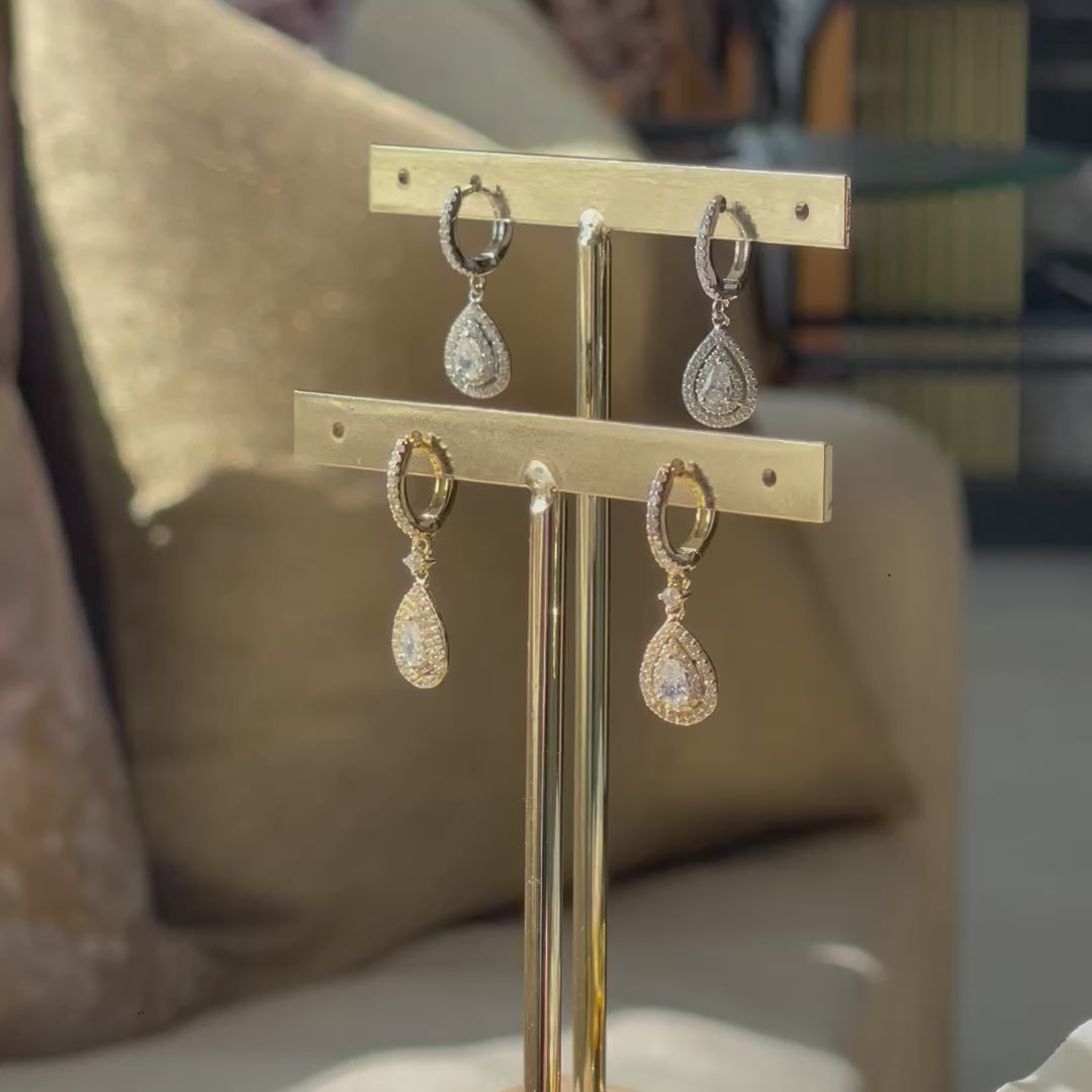 Arete huggie con gota doble halo